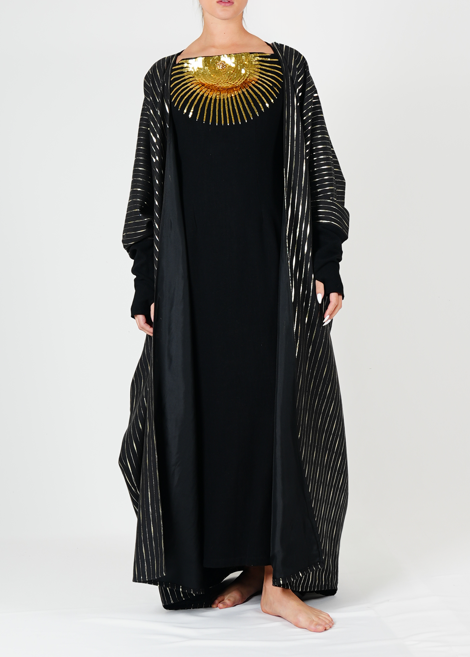 Black Velvet Kaftan with Silver Handcrafted Embellishment