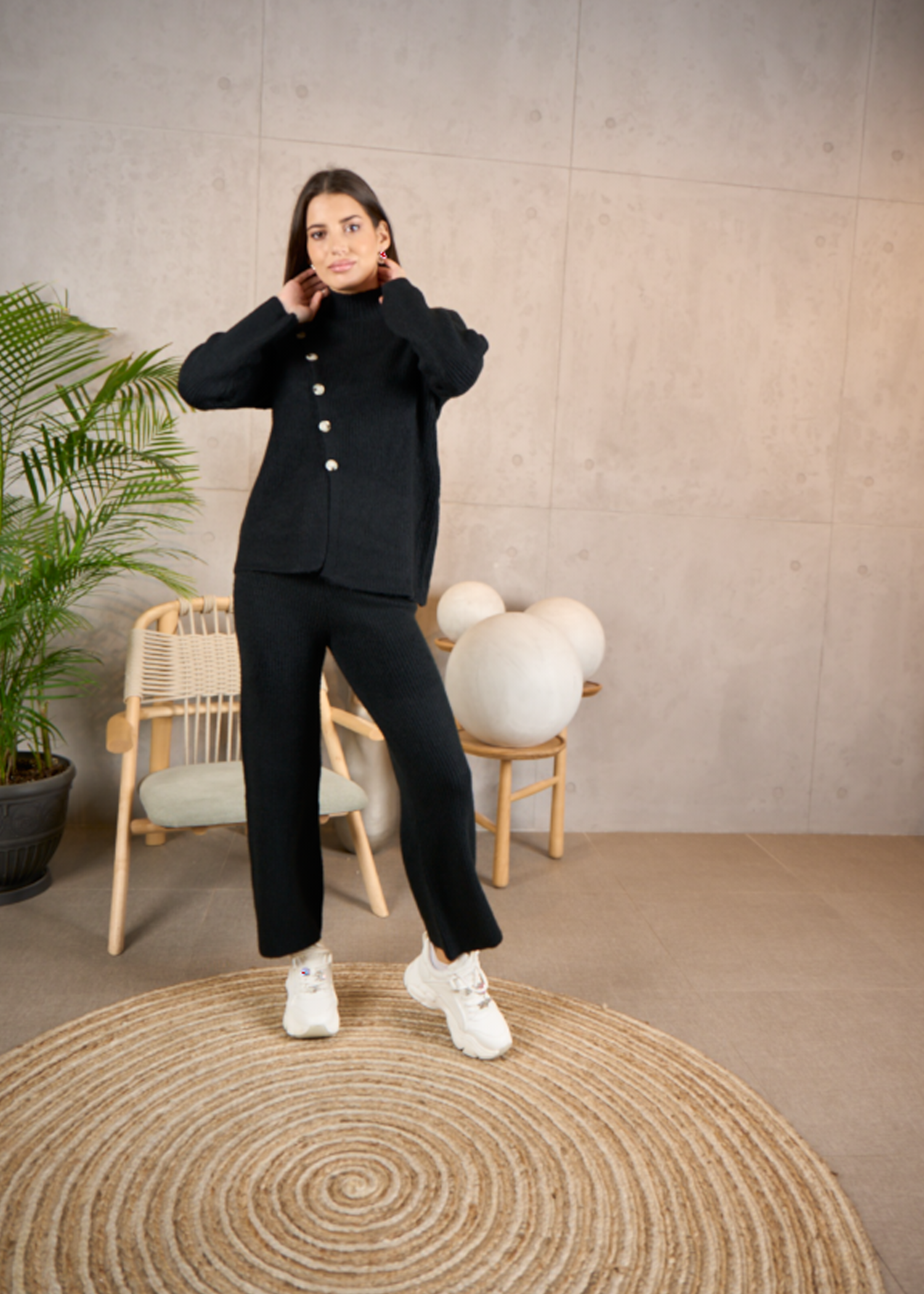 تمتعي بأناقة ودفء لا مثيل لهما مع طقم البنطلون والبلوزة الشتوي المريح والأنيق هذا. مصنوع من قماش فاخر ناعم وجيد التهوية، هذا الطقم مثالي للارتداء فوق طبقات الملابس والحفاظ على راحتك طوال الموسم. تتميز البلوزة ذات المقاس المريح بفتحة رقبة على شكل حرف V وأكمام طويلة، بينما يوفر البنطلون الضيق شكلًا انسيابيًا. سواء كنت ترتدين ملابس للعمل أو نزهة غير رسمية أو ليلة مريحة، فمن المؤكد أن هذا الطقم متعدد الاستخدامات سيصبح خيارك الجديد.