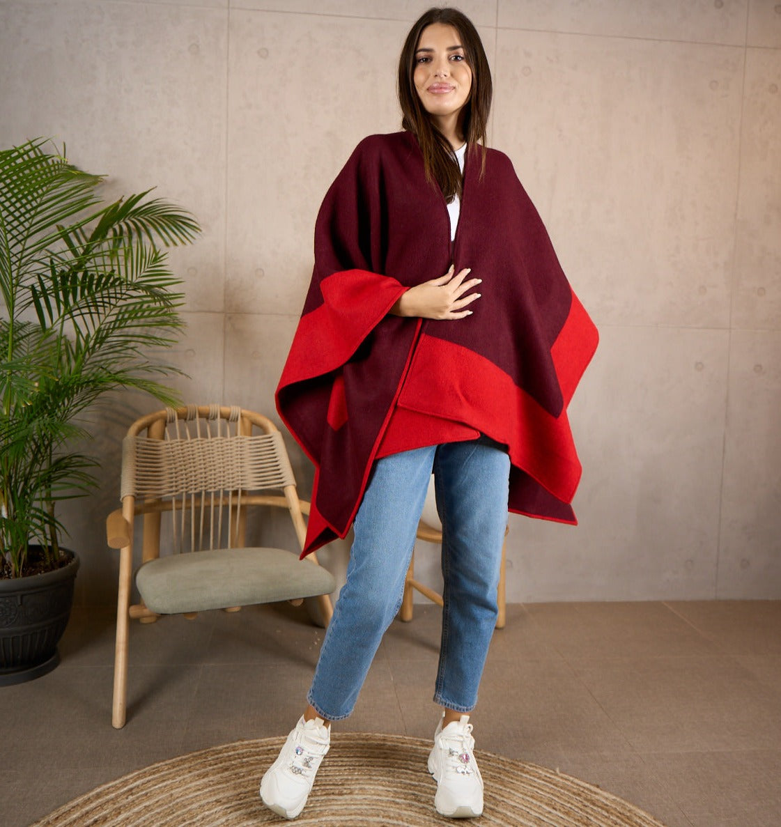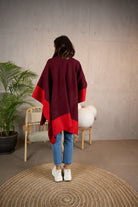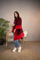 بونشو نسائي من صوف الكشمير باللون الأحمر - ناعم ودافئ وأنيق - مقاس واحد