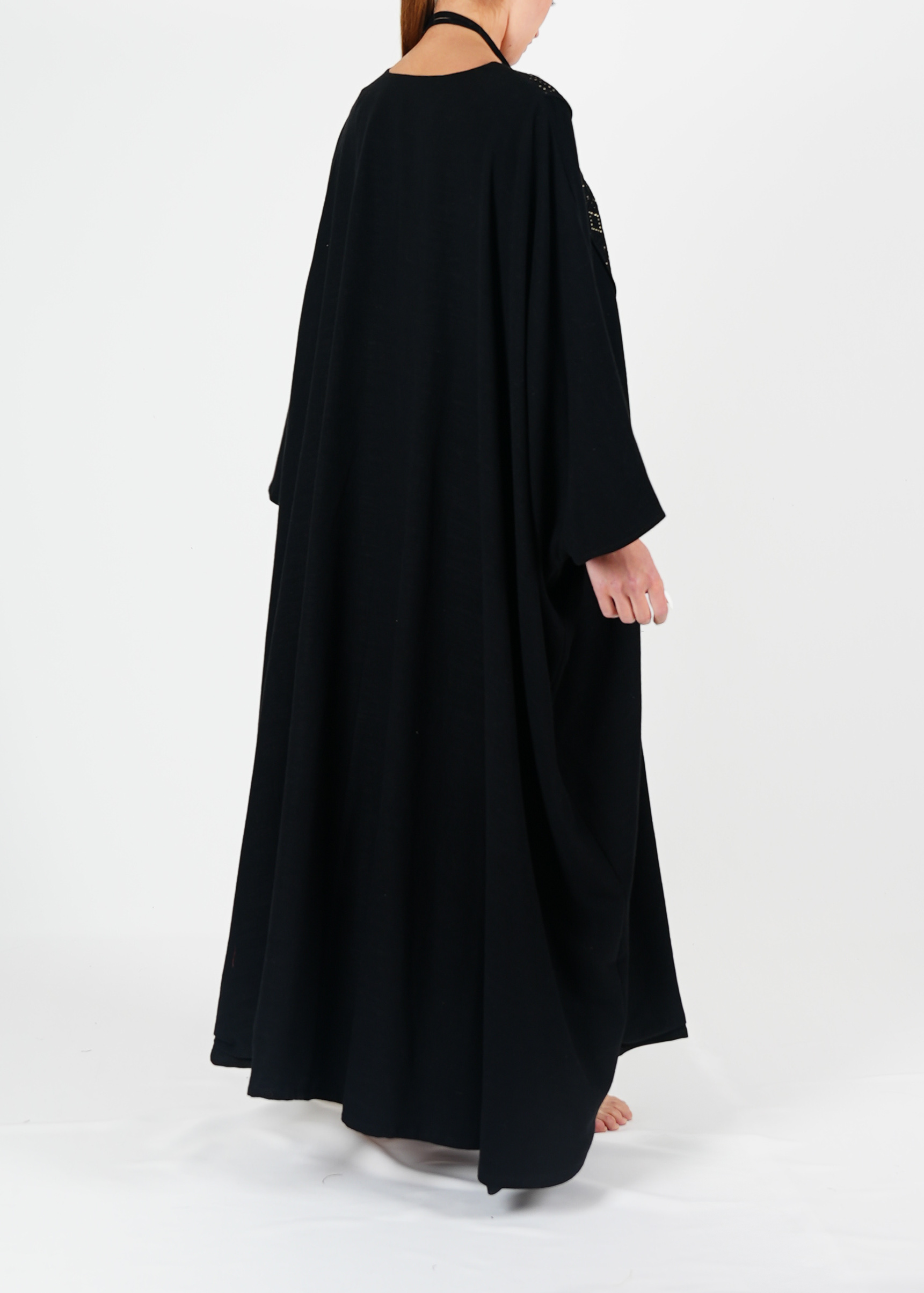 قفطان من الكتان الأسود بنقوش ذهبية - أناقة عصرية (55 بوصة)