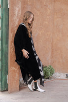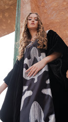 Black Velvet Kaftan with Ikat Panel