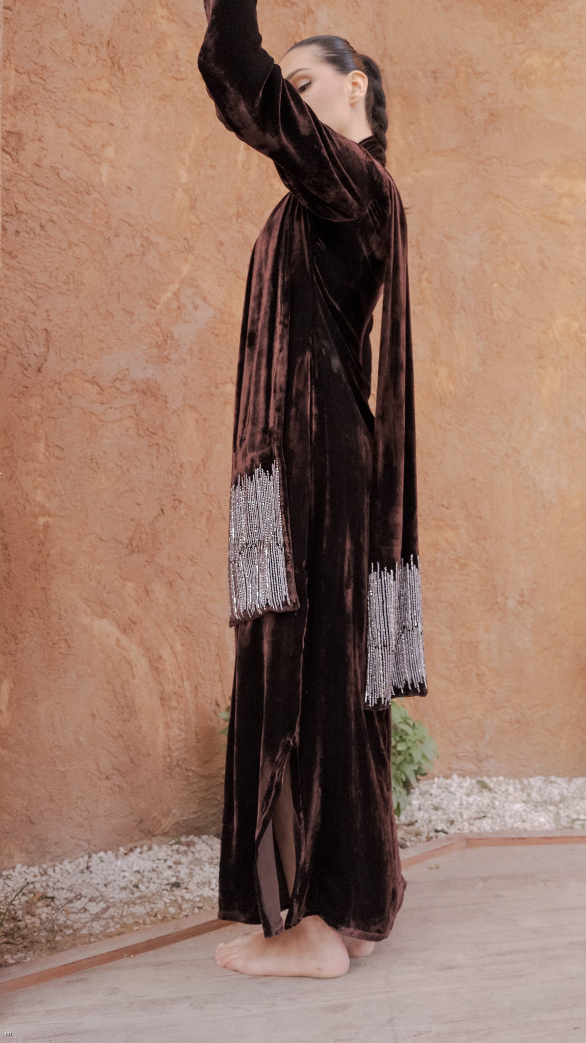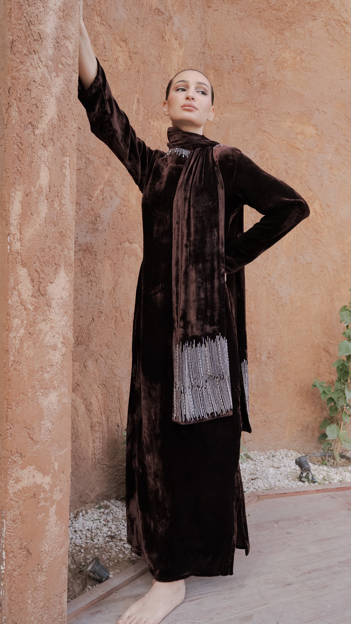 Brown Silk Velvet Kaftan Shawl
