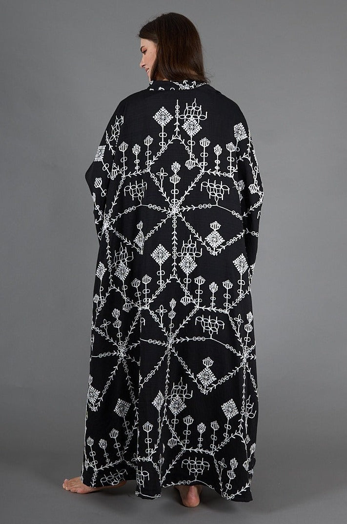 قماش مطرز بالكتان: يوفر هذا القماش الرائع ملمسًا خفيف الوزن، مما يجعلك تشعر بالراحة والخفة مع الشعور بالفخامة.