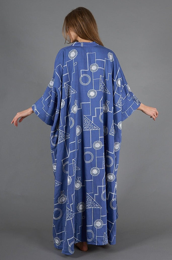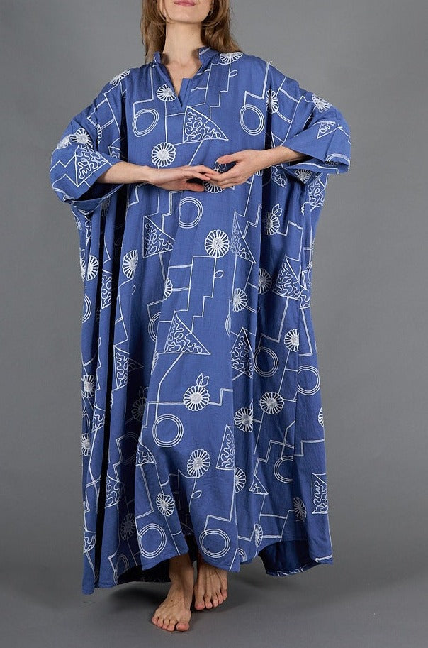 قفطان أزرق داكن مع تطريز أبيض، مبطن