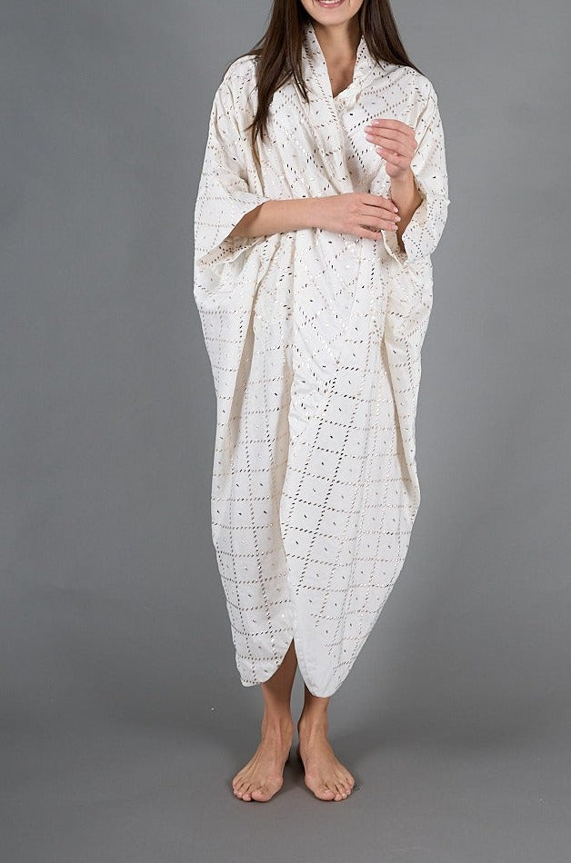 قماش مطرز بالكتان: يوفر هذا القماش الرائع ملمسًا خفيف الوزن، مما يجعلك تشعر بالراحة والخفة مع الشعور بالفخامة.