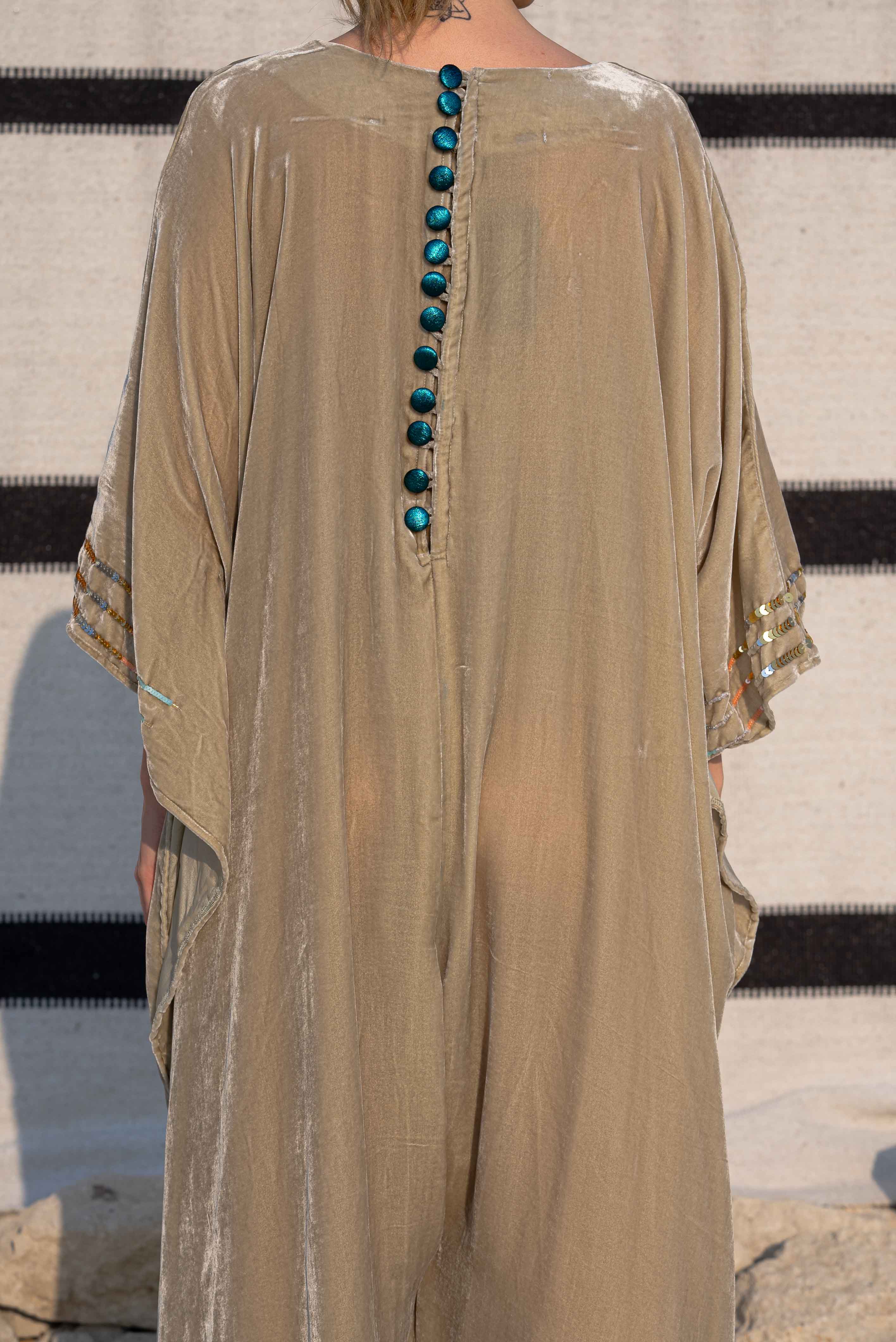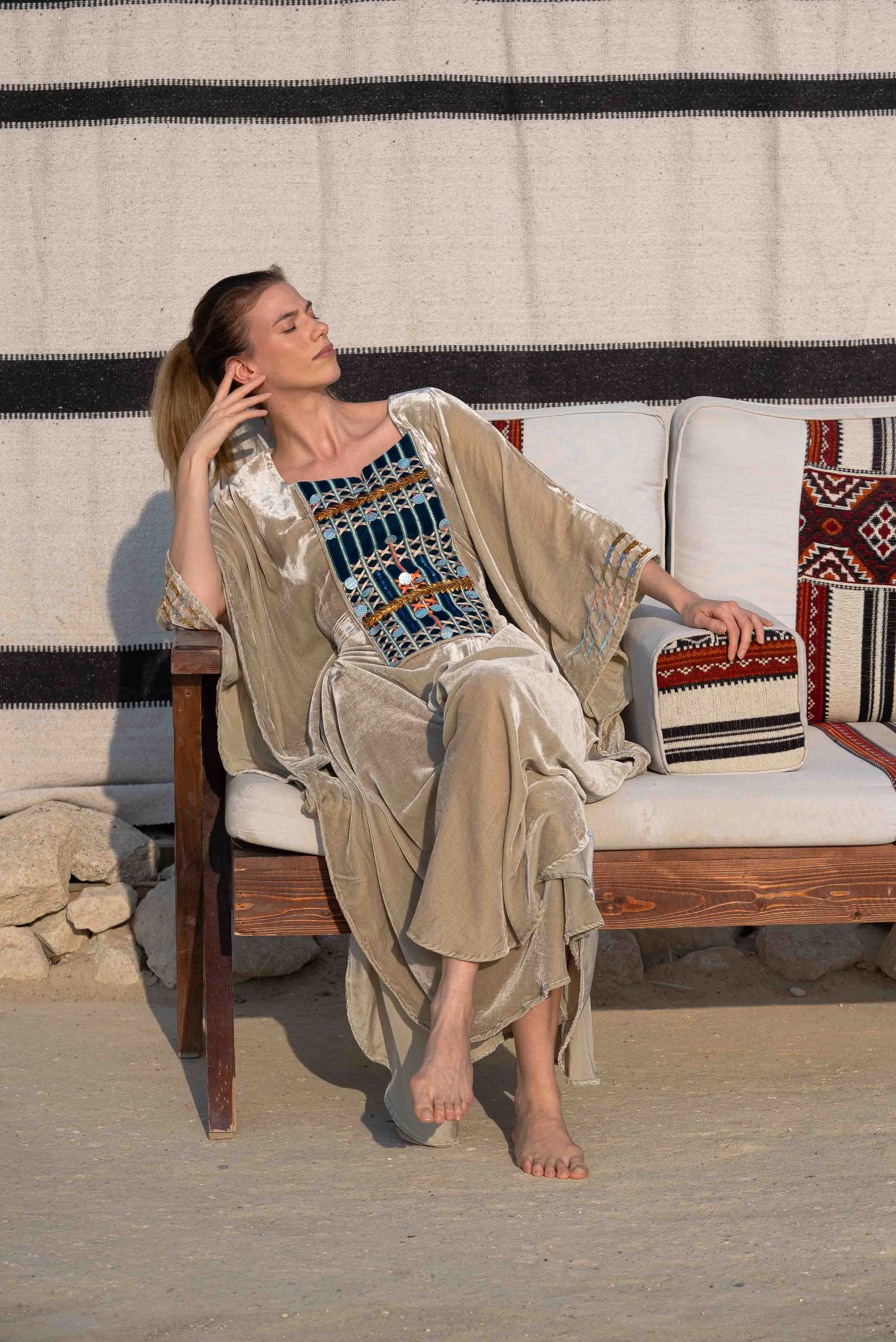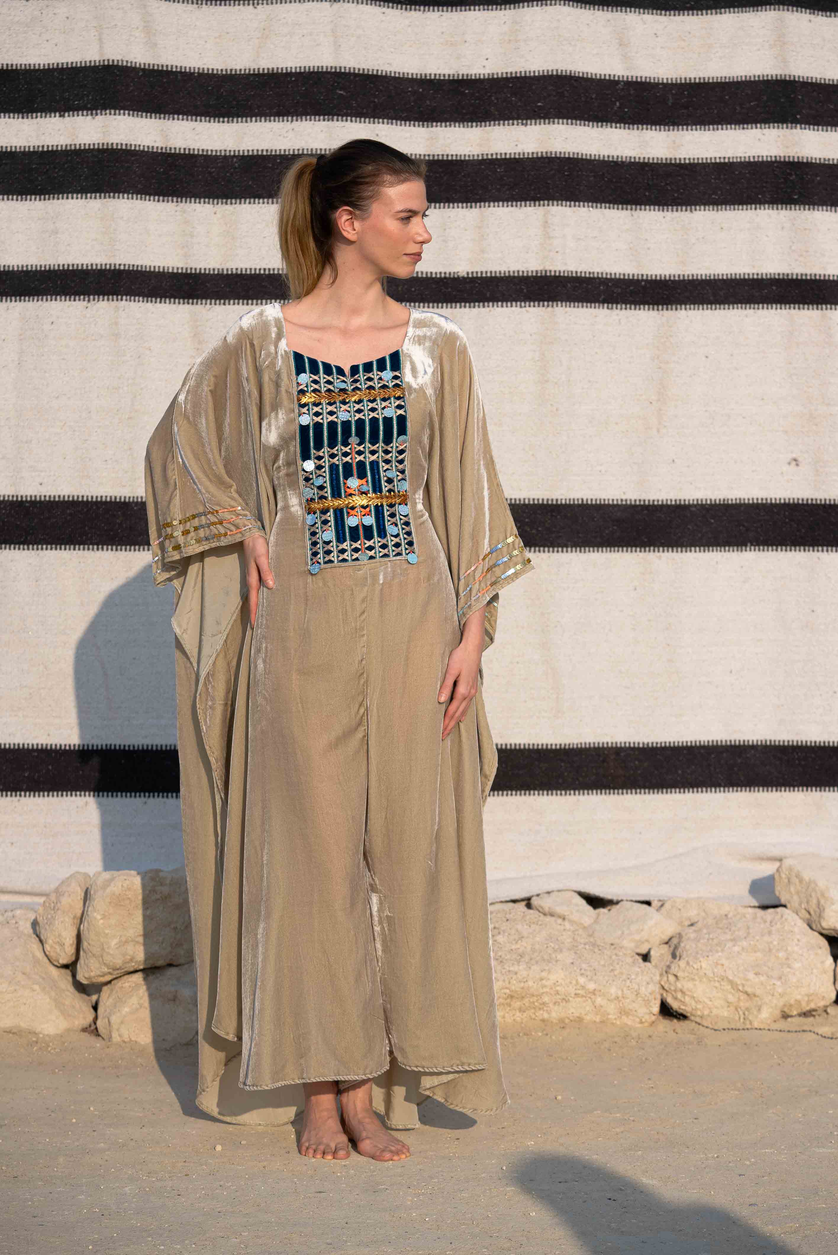 - Silhouette: A unique kaftan-style jumpsuit design combining elegance with modern comfort.