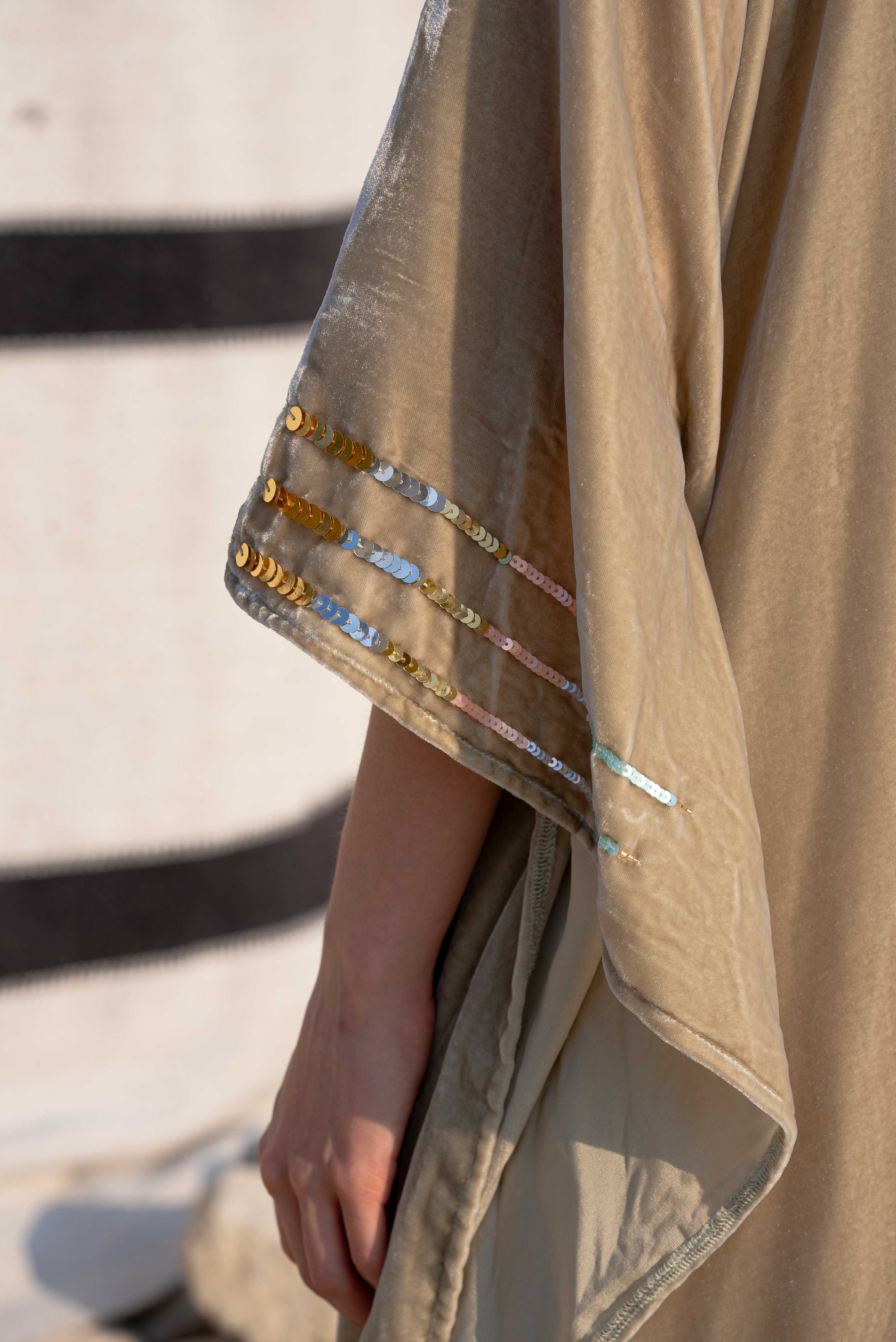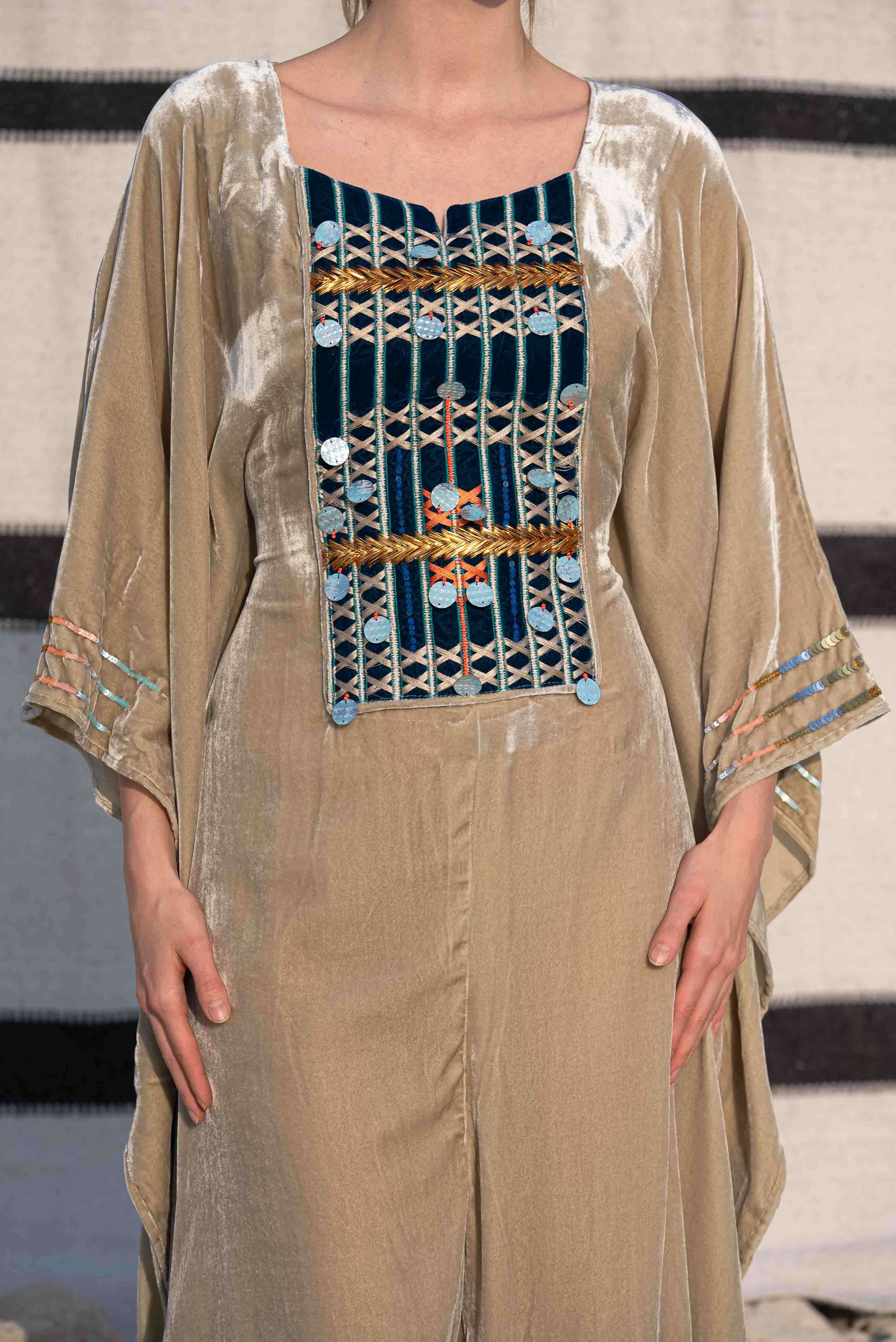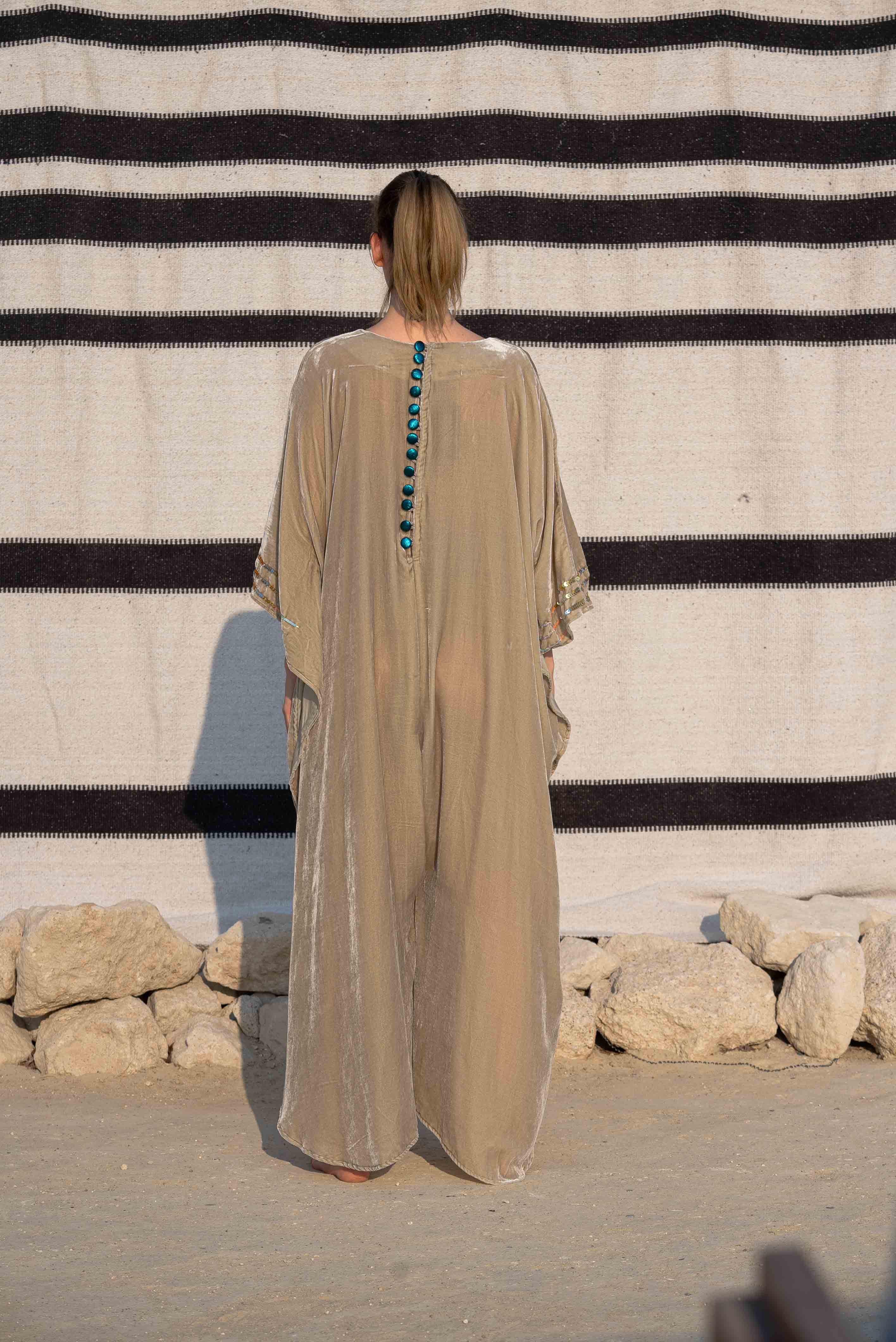 - Silhouette: A unique kaftan-style jumpsuit design combining elegance with modern comfort.